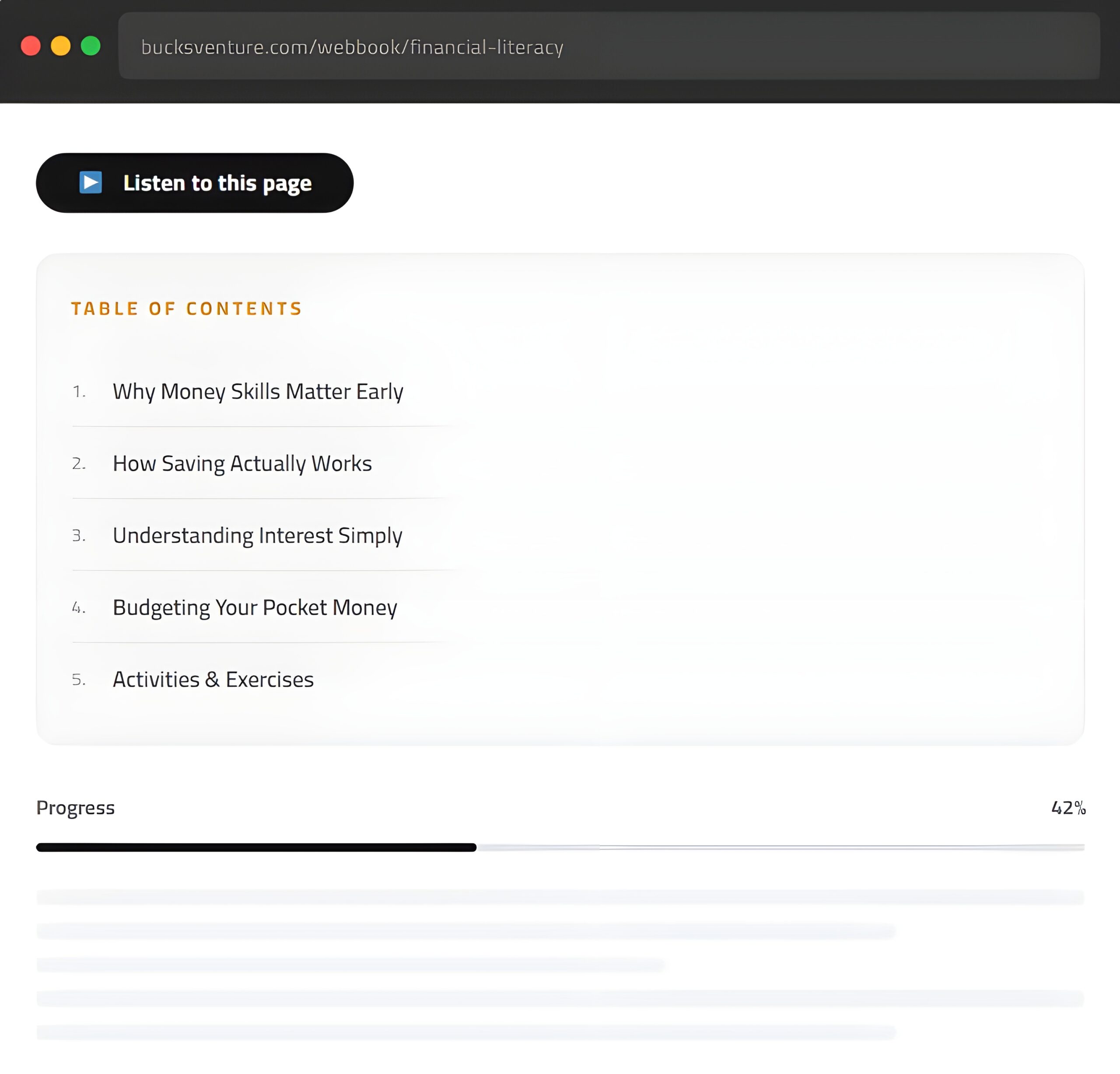 Rich, interactive web articles — readable, listenable, and printable. Far beyond a static PDF.